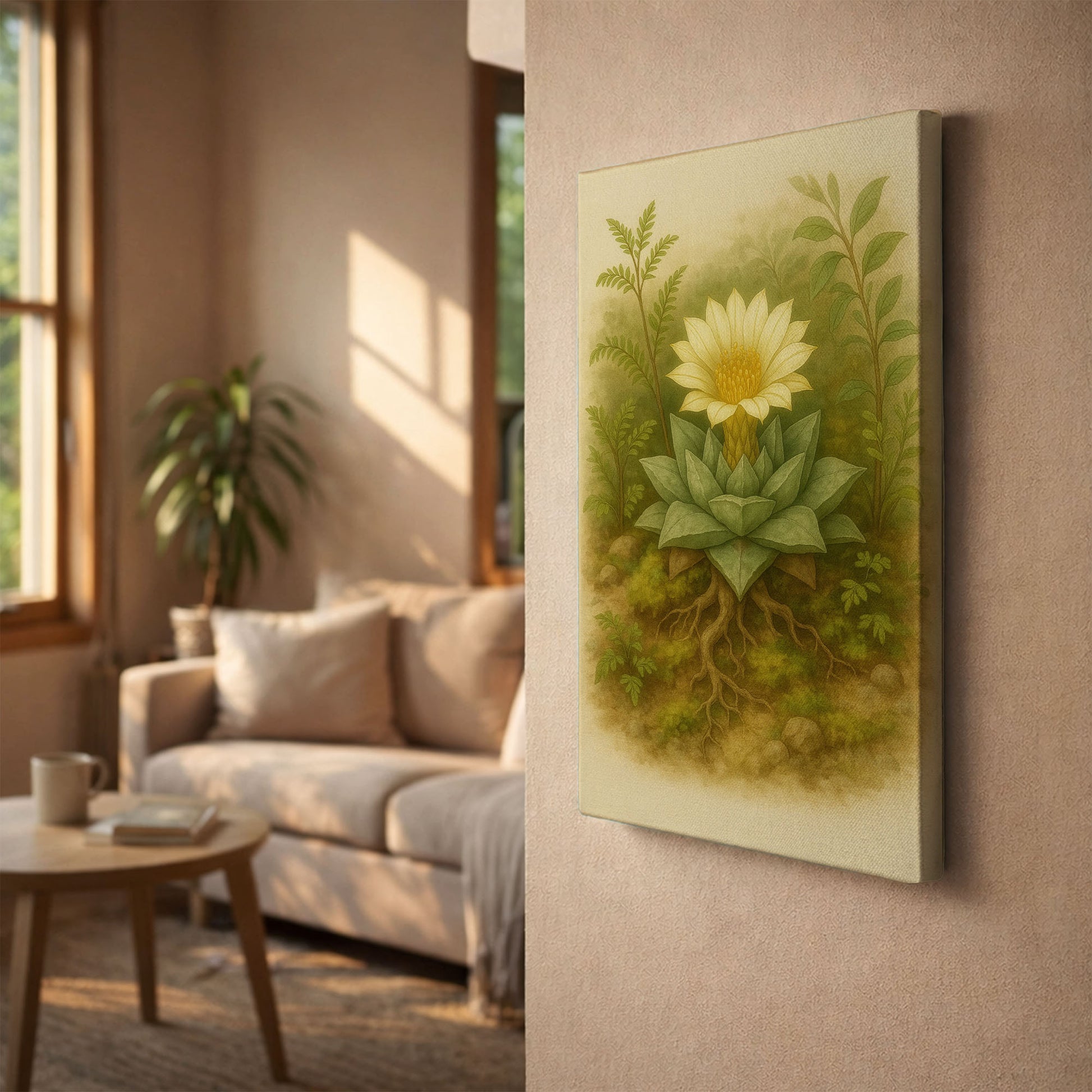 This canvas wall art works well in organic interiors, desert-themed decor, and botanical collections that highlight plants in their natural context.
