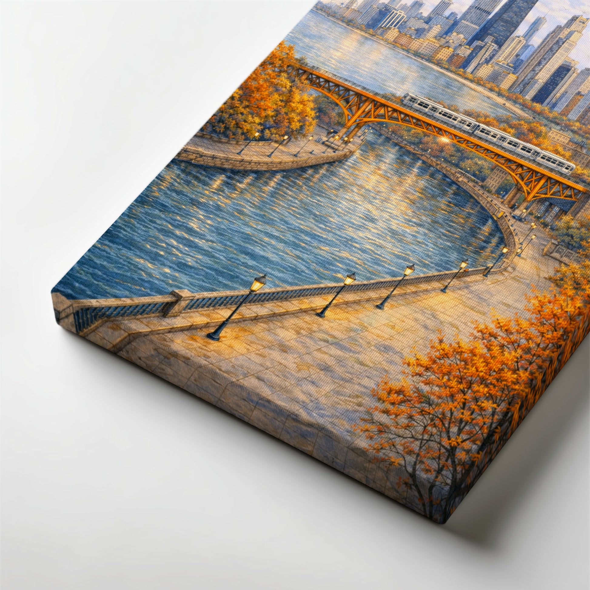 A luminous view of Chicago where architecture, water, and autumn light come together.