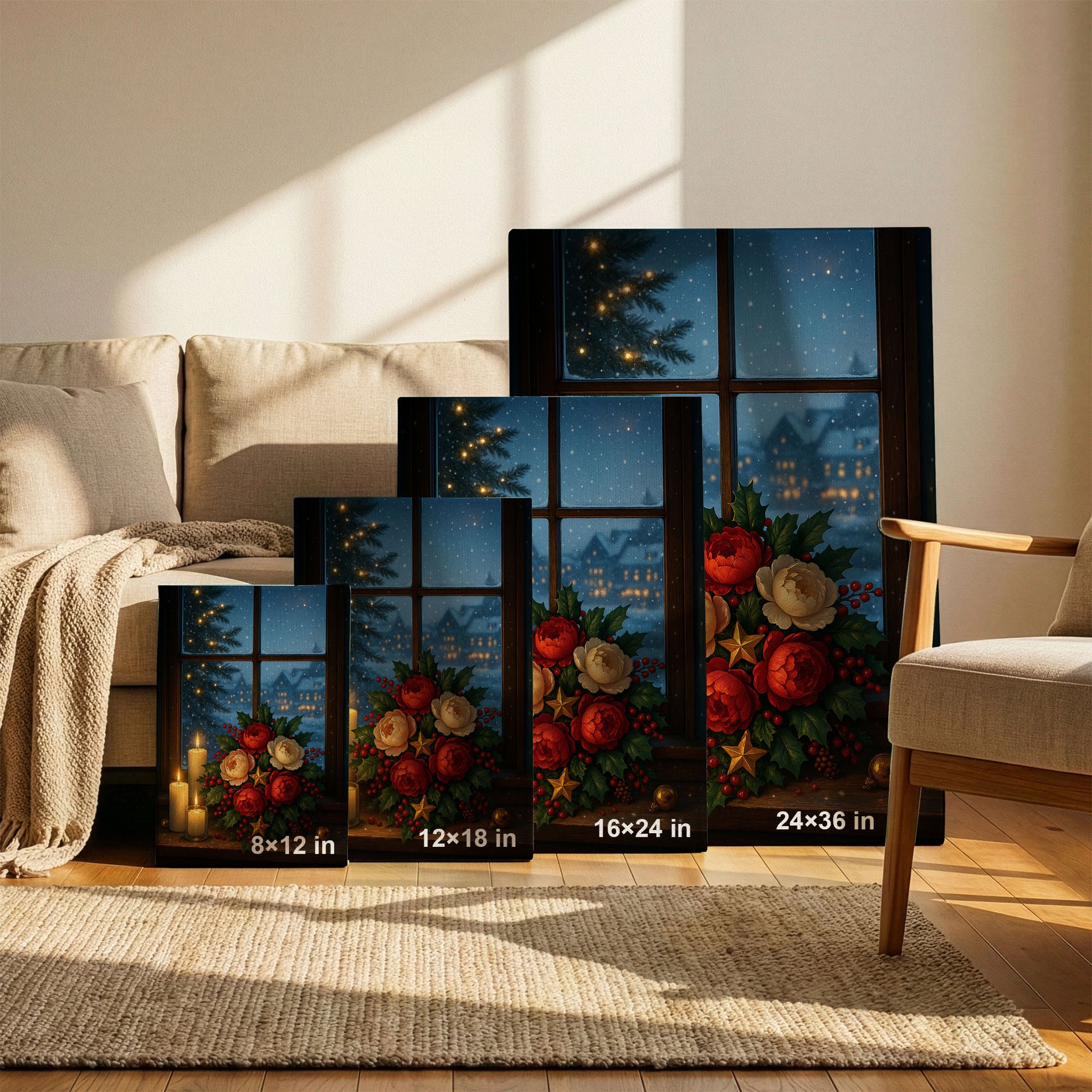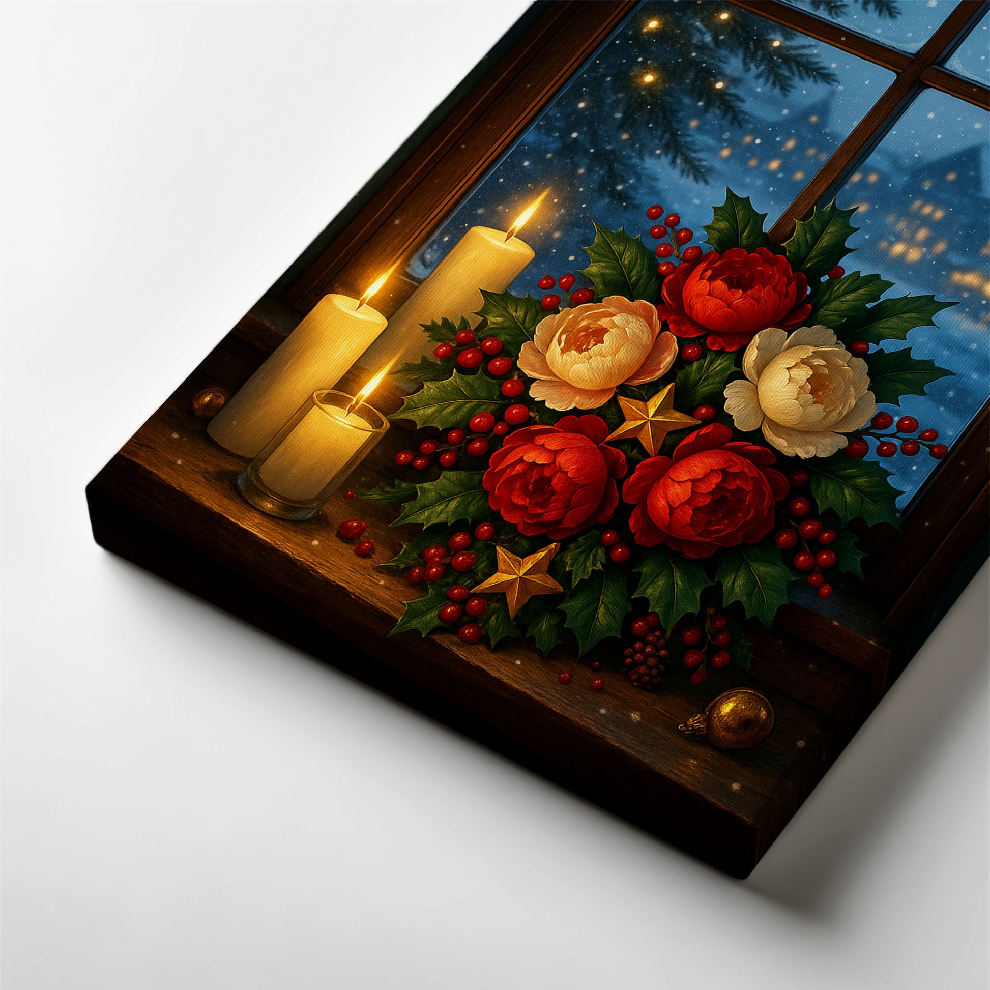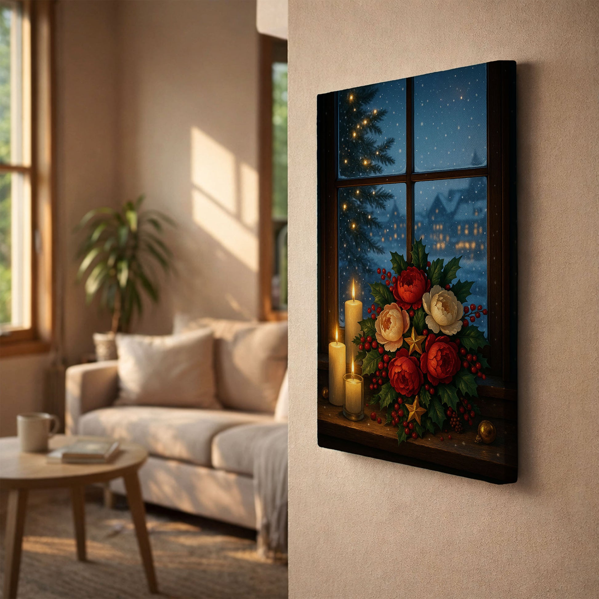 Christmas Window Canvas Wall Art – Cozy Winter Holiday Scene