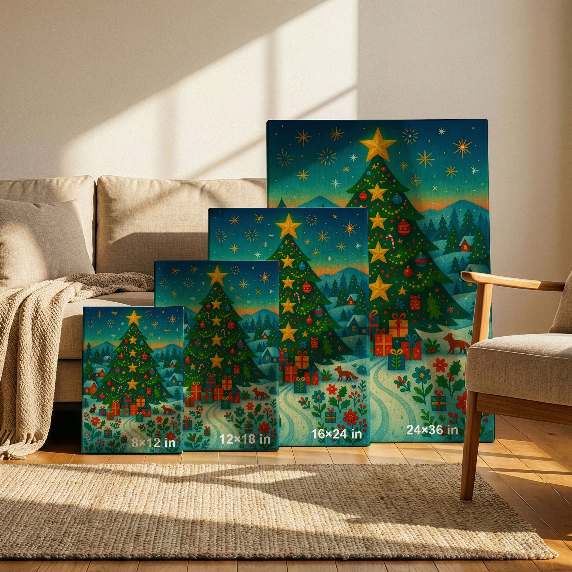 Golden Star Holiday serves as a timeless holiday artwork that blends seamlessly into cozy, design-conscious interiors.