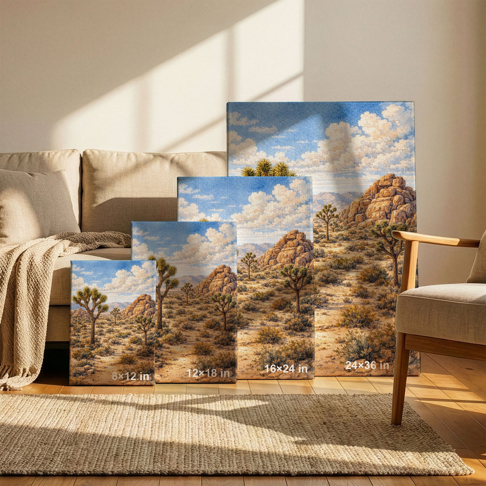 This artwork captures the unique stillness of Joshua Tree—minimal, grounded, and contemplative. Perfect for modern interiors, bohemian spaces, or rooms that seek warmth, simplicity, and a sense of open air.