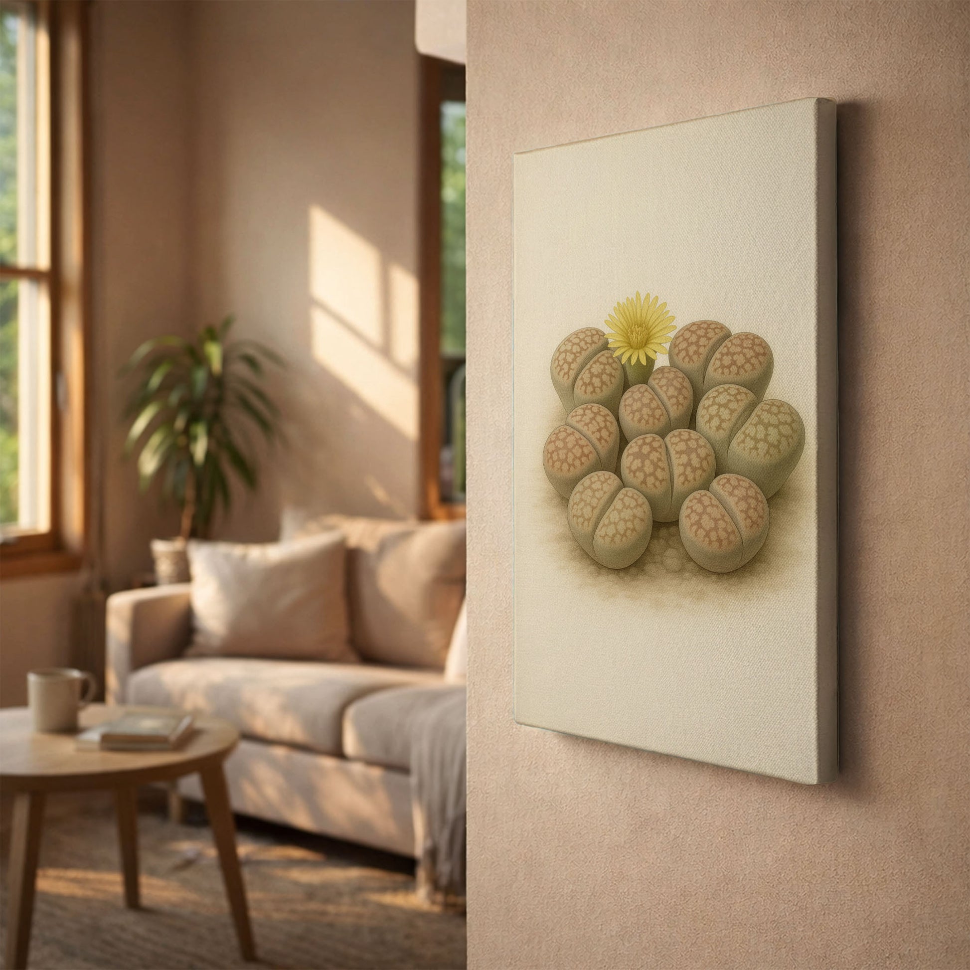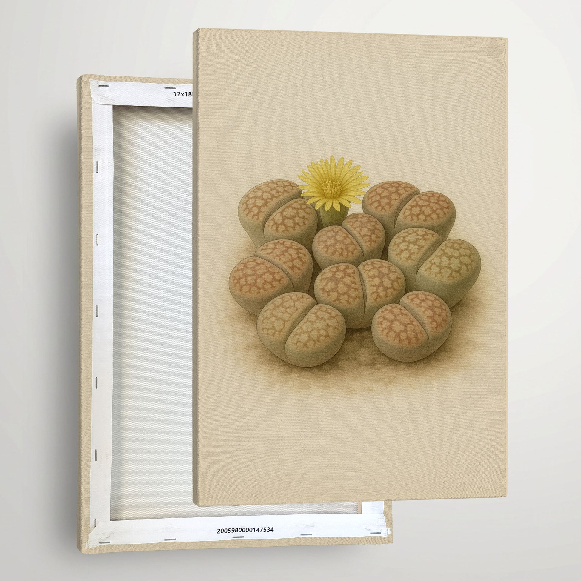 Lithops Living Stone Illustration - Minimalist Botanical Canvas Wall Art