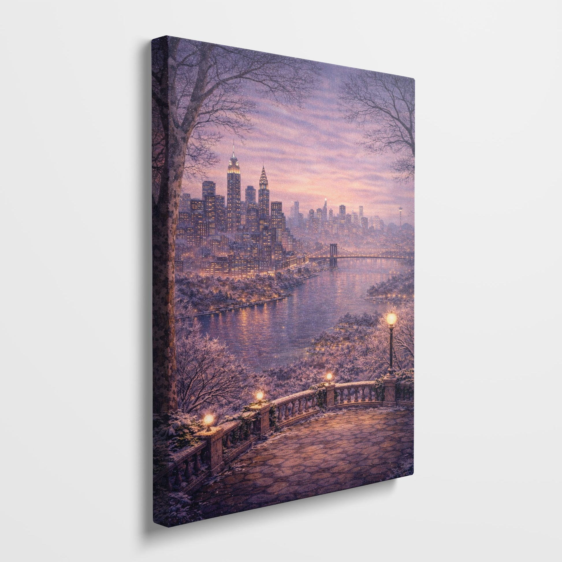 New York Winter Canvas Art | Snowy Skyline & River City Wall Decor
