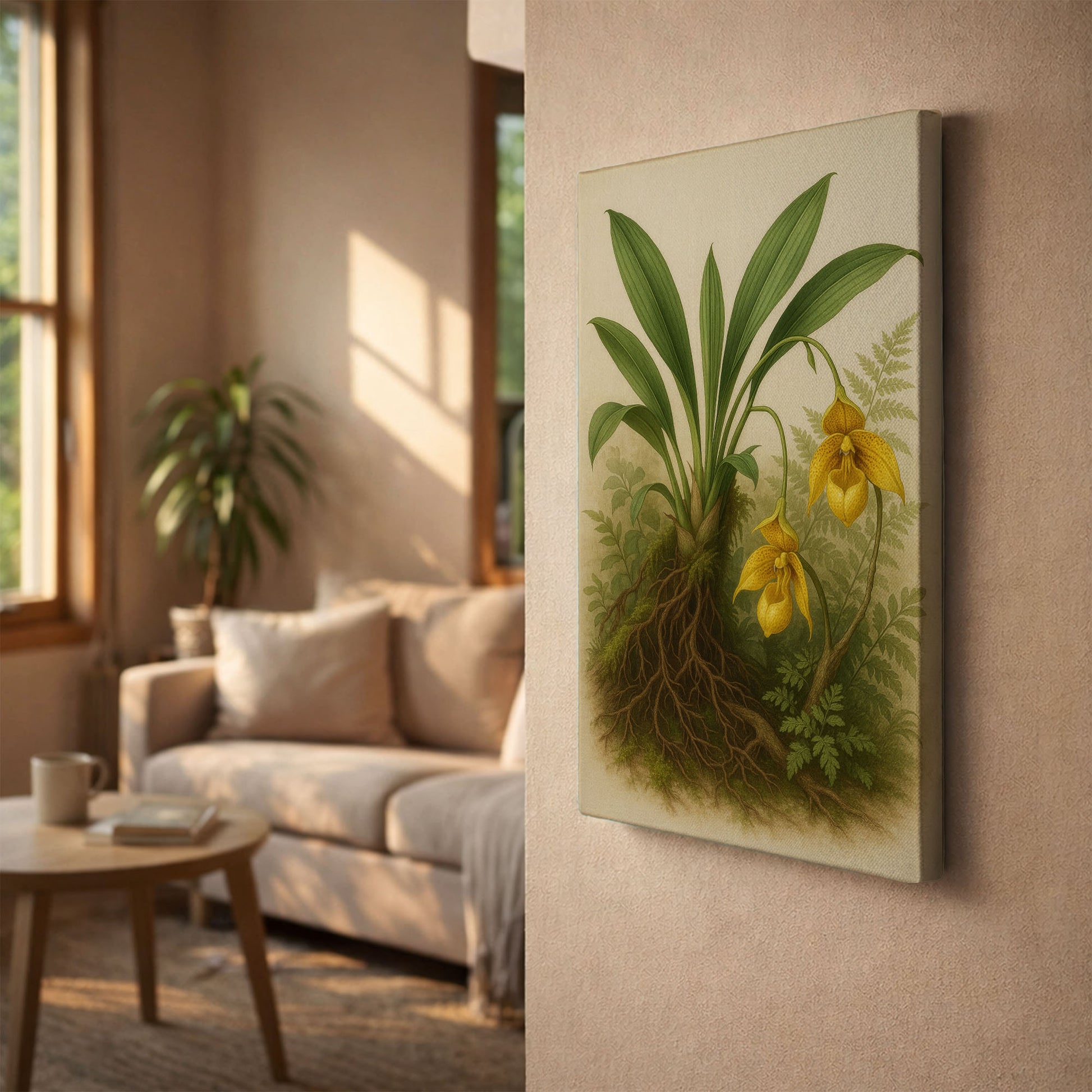 Slipper Orchid in Forest Light - Botanical Canvas Wall Art