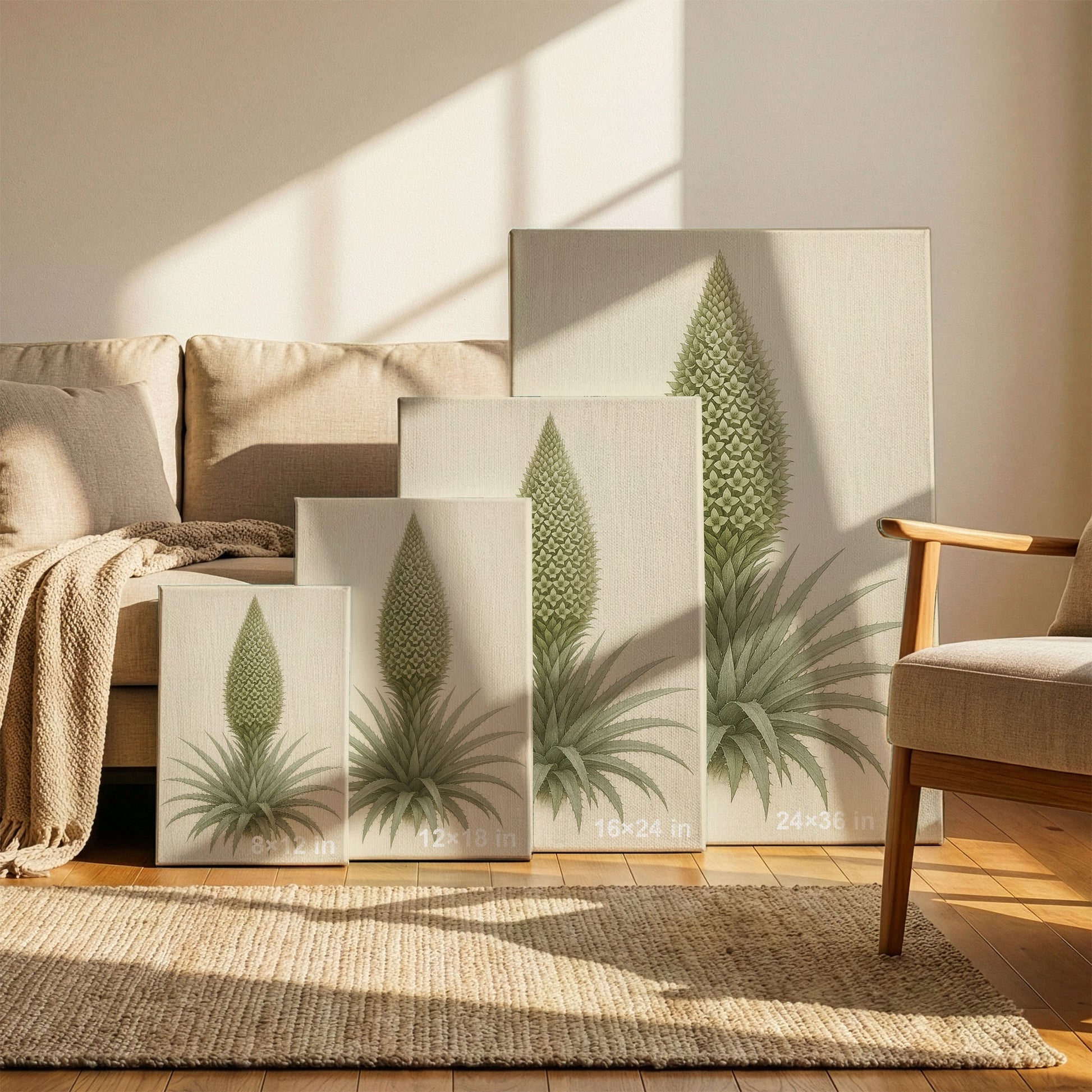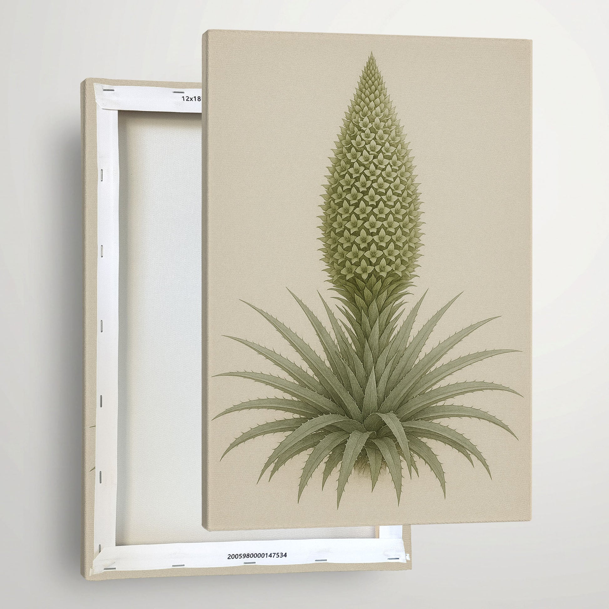 Rendered in soft, muted greens against a warm neutral background, this piece feels both botanical and architectural. It works beautifully in calm interiors, adding subtle visual interest without overwhelming the space.