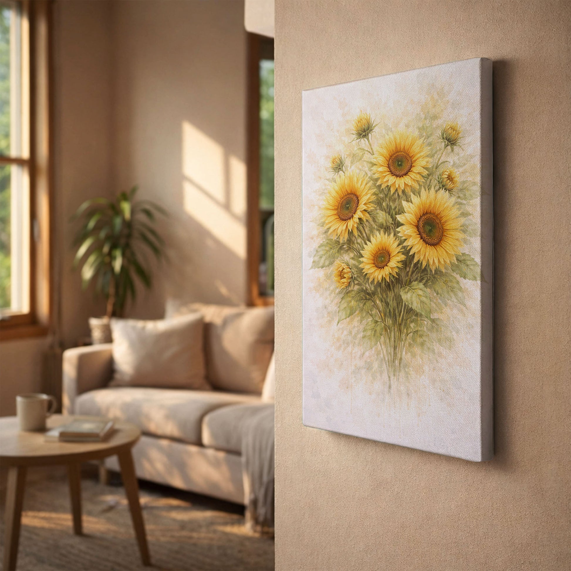 Printed as premium canvas wall art, this piece adds a cheerful yet refined floral presence without overwhelming the room.