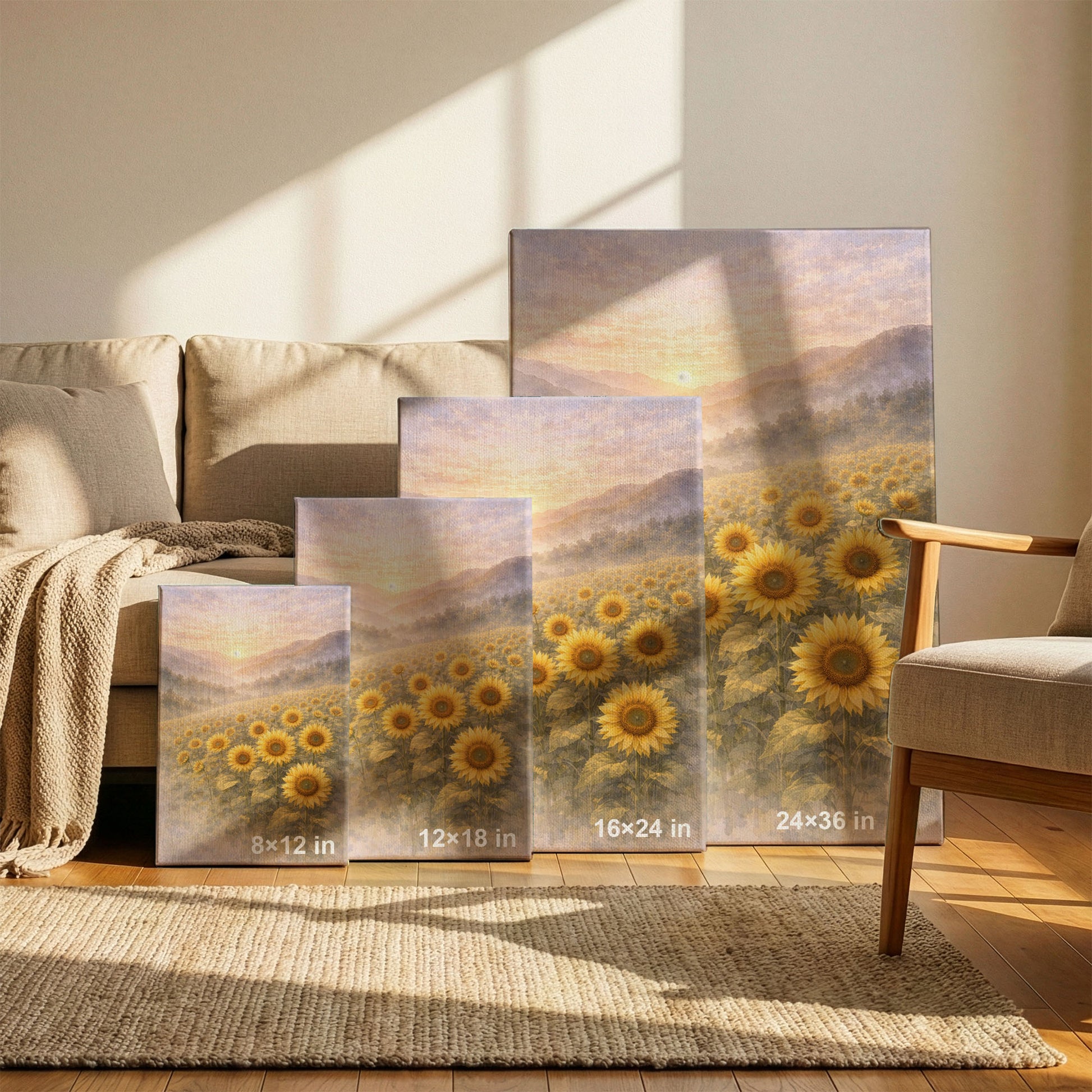 A beautiful choice for those who love sunflower art, countryside scenes, and calming nature wall decor.