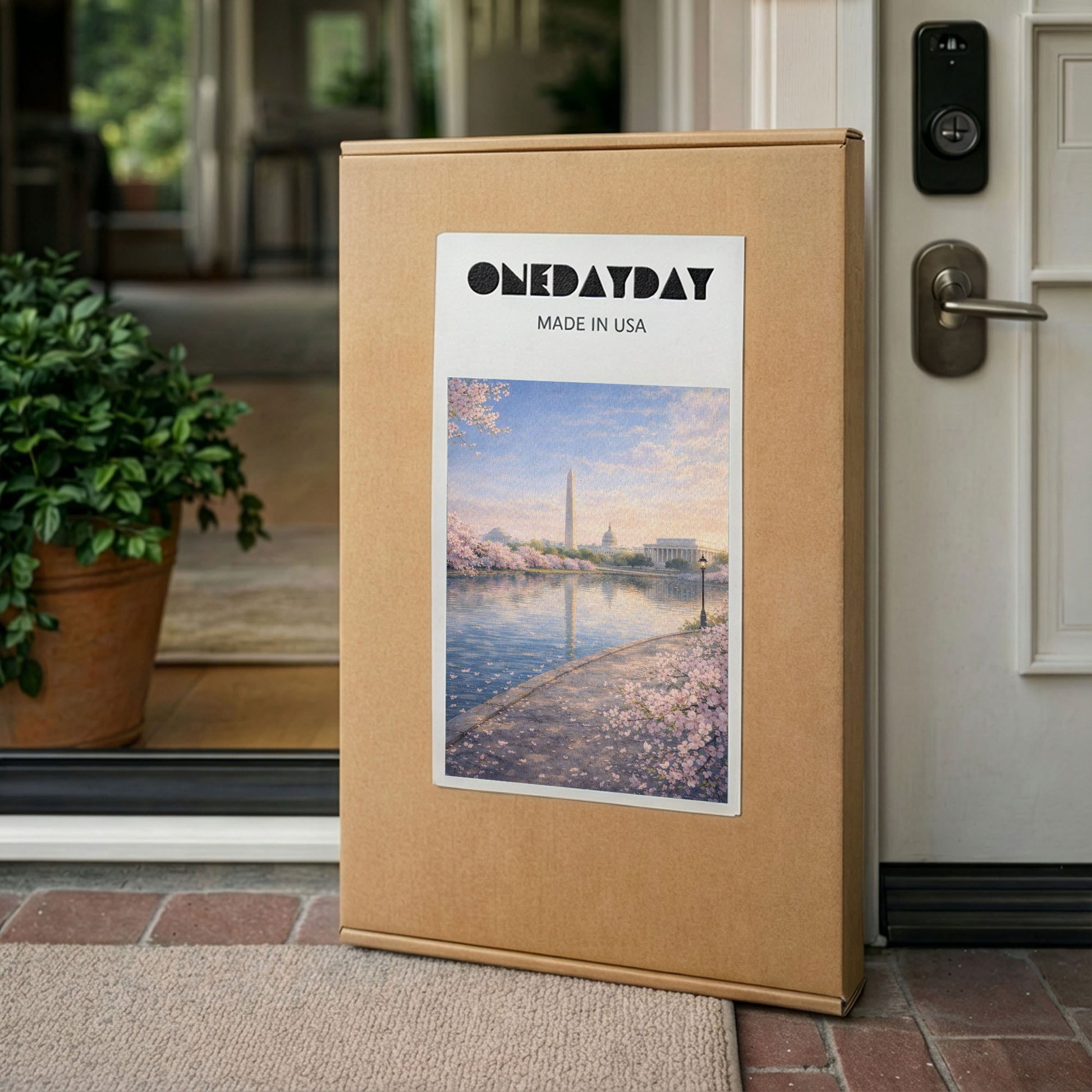 Soft cherry blossoms frame a serene reflection of Washington D.C.’s most iconic landmarks.